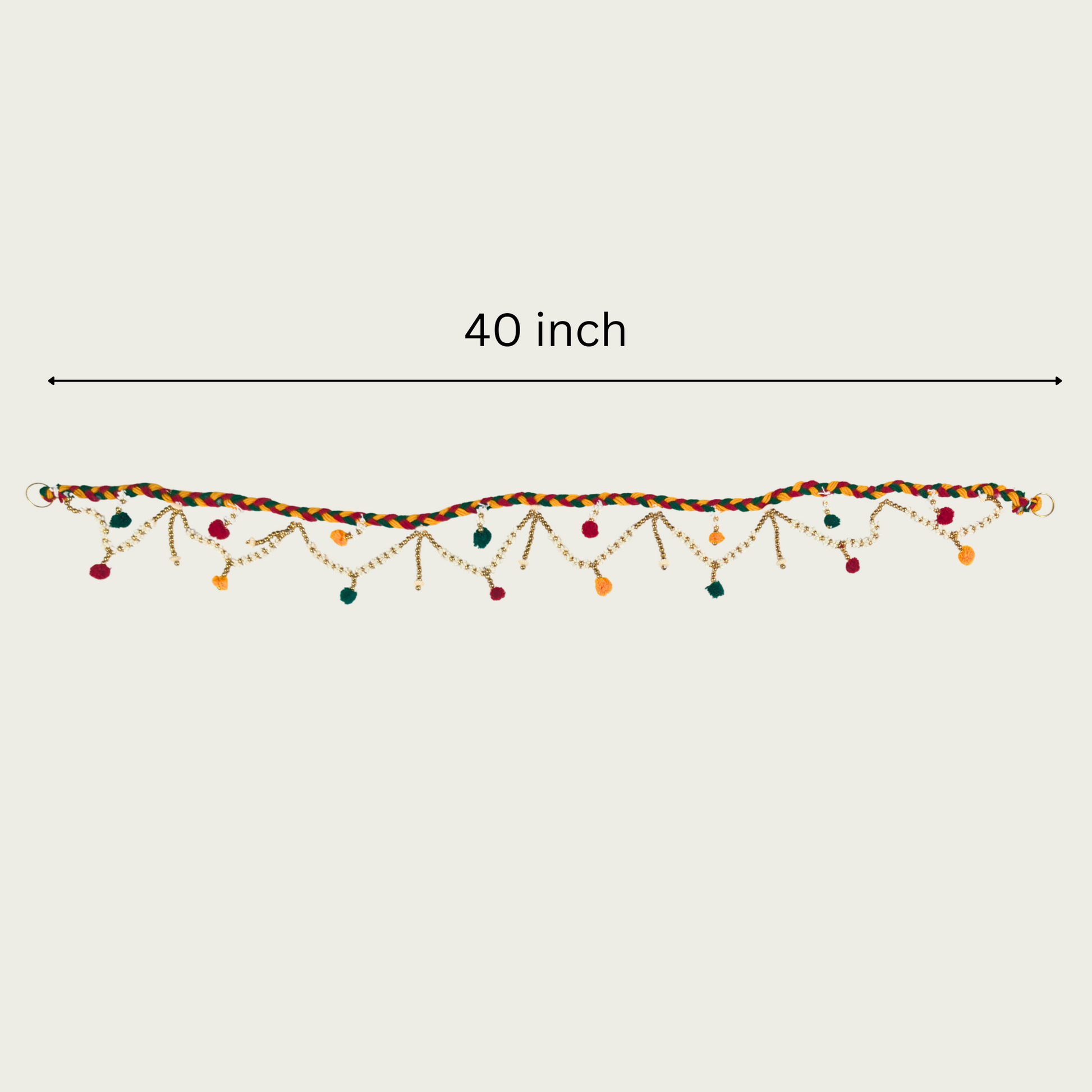 Add a vibrant touch to your home decor with this 40-inch colorful festive toran from Kanha Kishori. Adorned with intricate beadwork, tiny colorful pom-poms, and delicate tassels, it is perfect for celebrating festivals, weddings, or enhancing any special occasion. Art No: E07. Bring tradition and lively elegance to your entryway with this beautifully crafted decorative piece that radiates joy and cultural charm.
